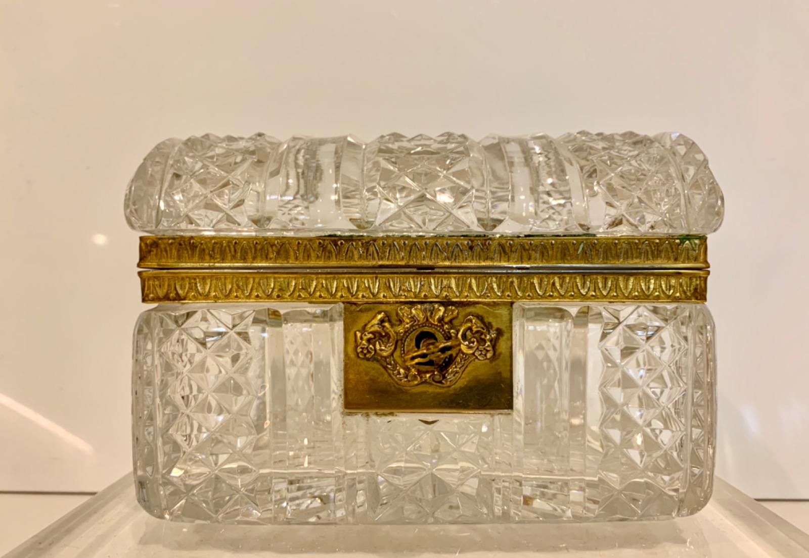 Baccarat Glass Jewellery Casket / Box Antique Bronze Mounted