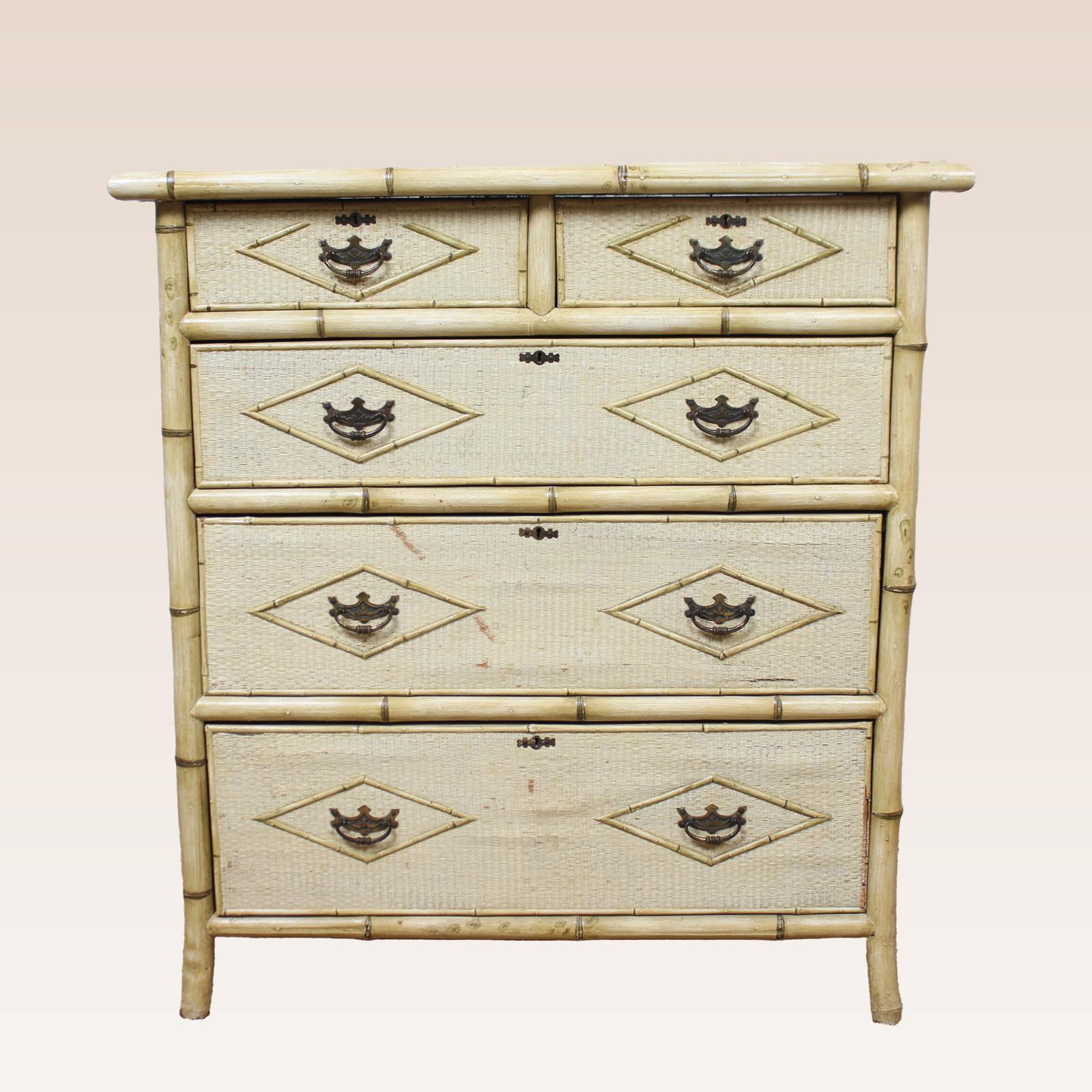 Bamboo Chest of Drawers Japanese 19th Century Rattan Asian Victorian