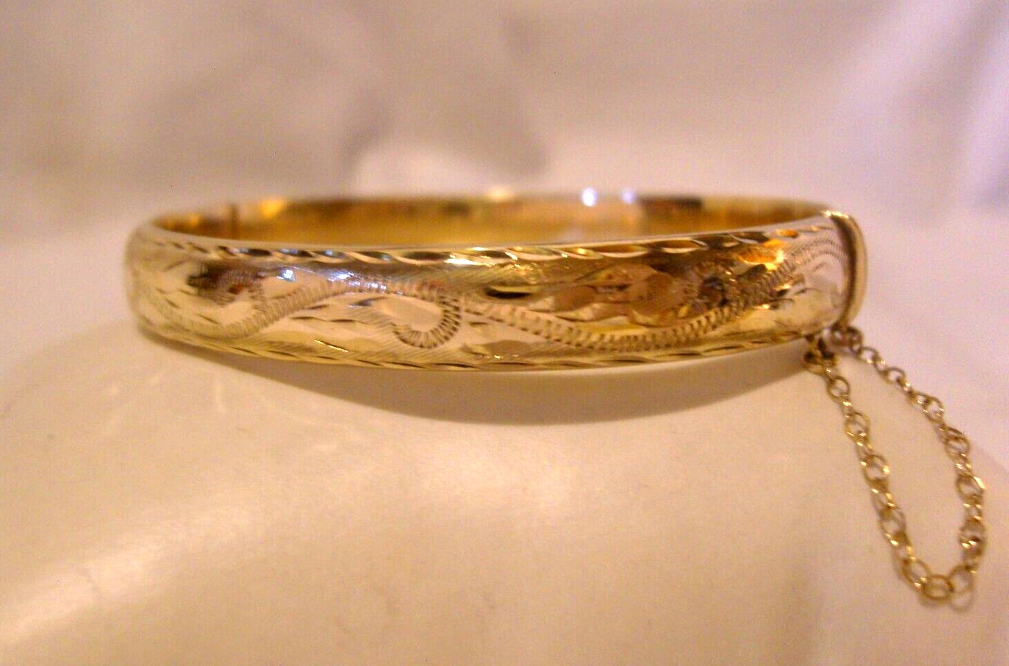 Bangle 9ct Gold 9 .375 Fancy Scrollwork Vintage Bracelet 7" Length 10.3 Grams
