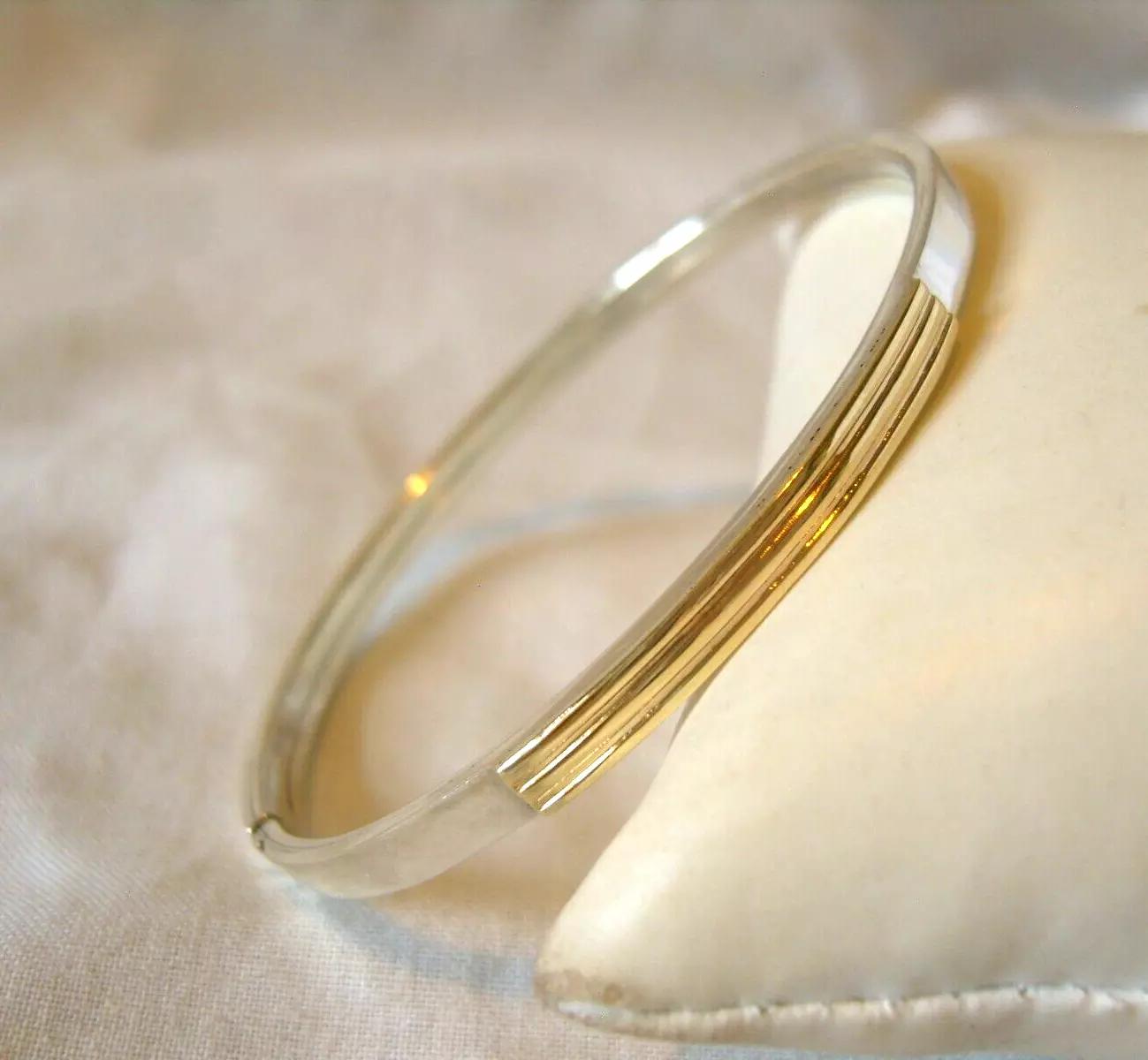 Bangle Silver & 14ct Gold Vintage High Grade 950 Silver Bracelet (7" Length 9.1g)