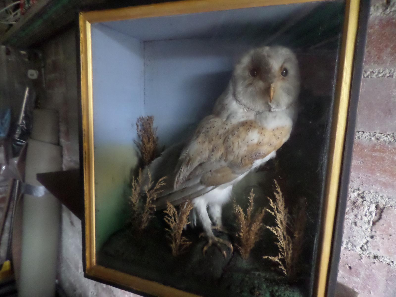 Barn Owl (1) in Ebonised Glass Case with Gilding