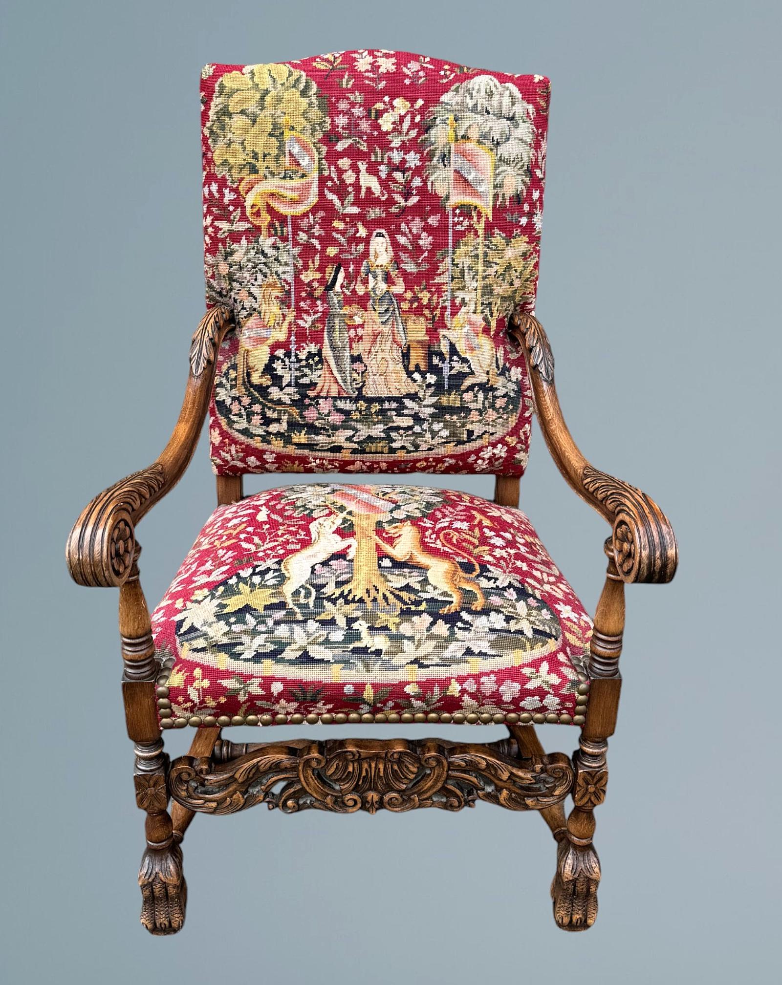 Baronial Style Carved Walnut Armchair (1 of 14)