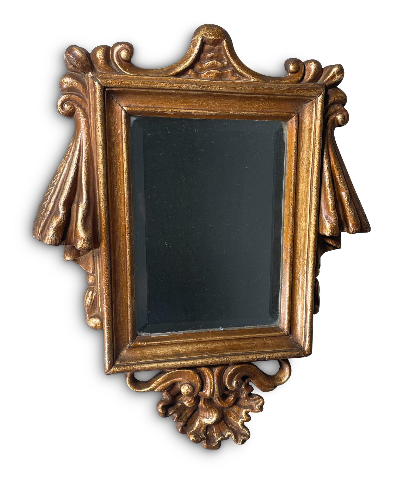 Baroque Style Giltwood Rectangular Bevelled Mirror With Drapery and Scroll Decoration