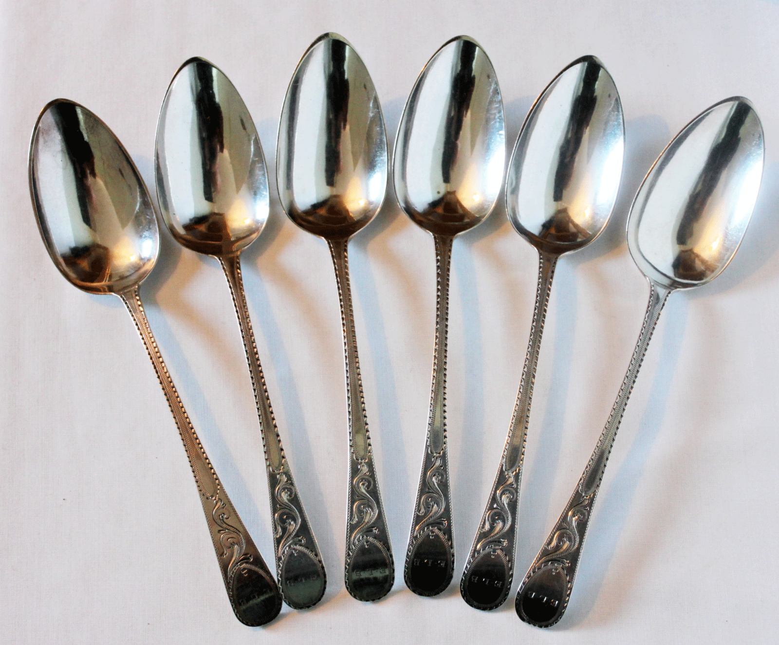 Bateman Silver - Set of Six Bright Cut Table Spoons