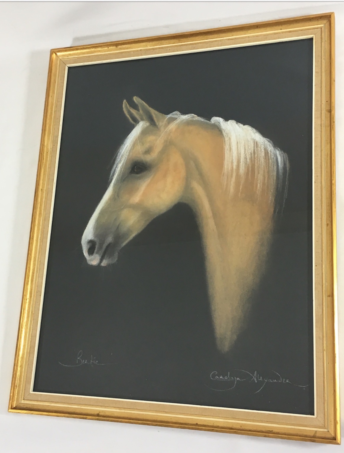 Bay Hunter Horse Pastel Painting Signed Under Glass (1 of 1)