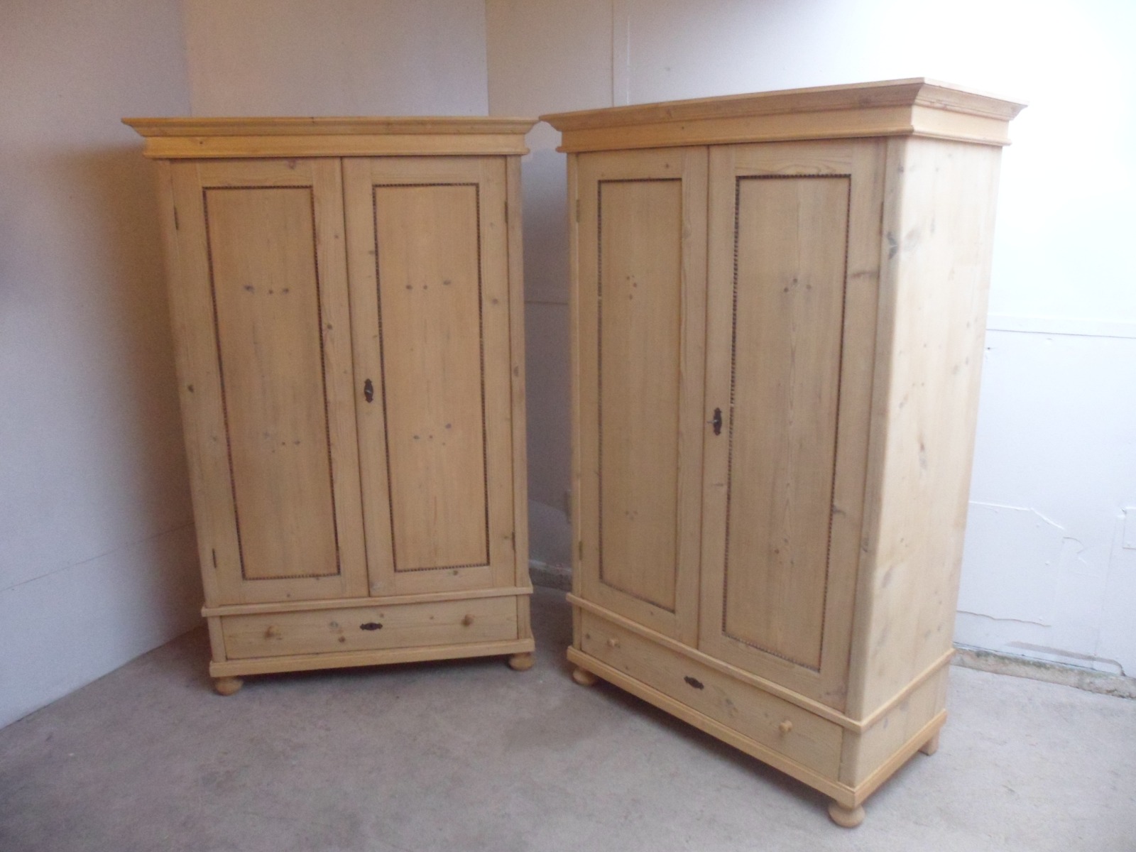 Beaded Pair of Tall Antique Pine Knockdown Wardrobes to Wax / Paint