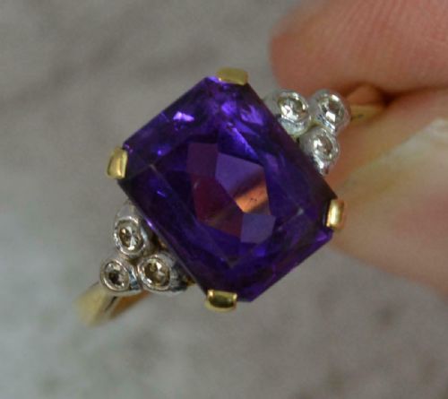 Beautiful 18ct Gold Amethyst & Diamond Cluster Ring