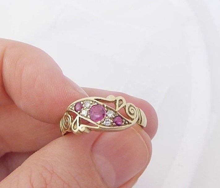 Beautiful 18ct Gold Diamond & Ruby Art Deco Ring