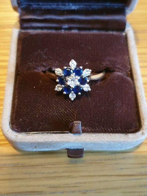 Beautiful 18ct Gold Sapphire & Diamond Flower Ring
