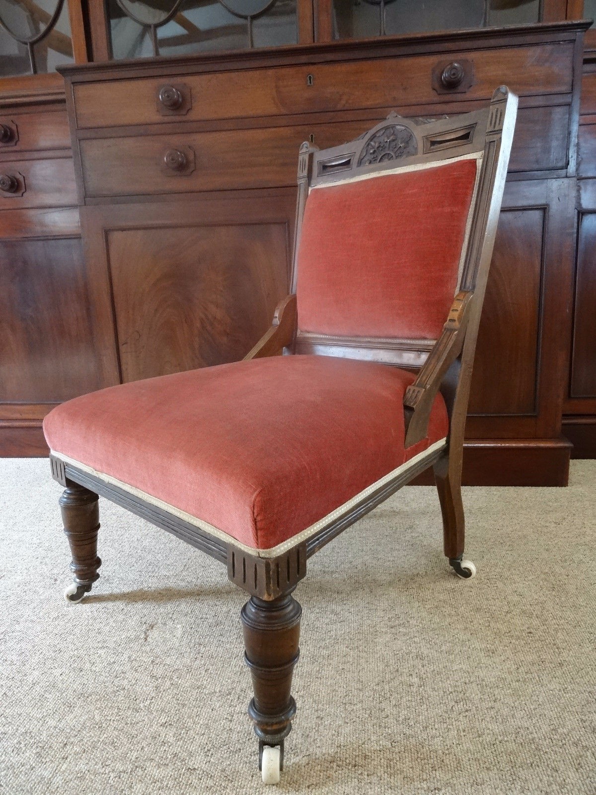 Beautiful 19th Century Dusky Pink Velvet Upholstered Carved Walnut Bedroom Chair c.1890