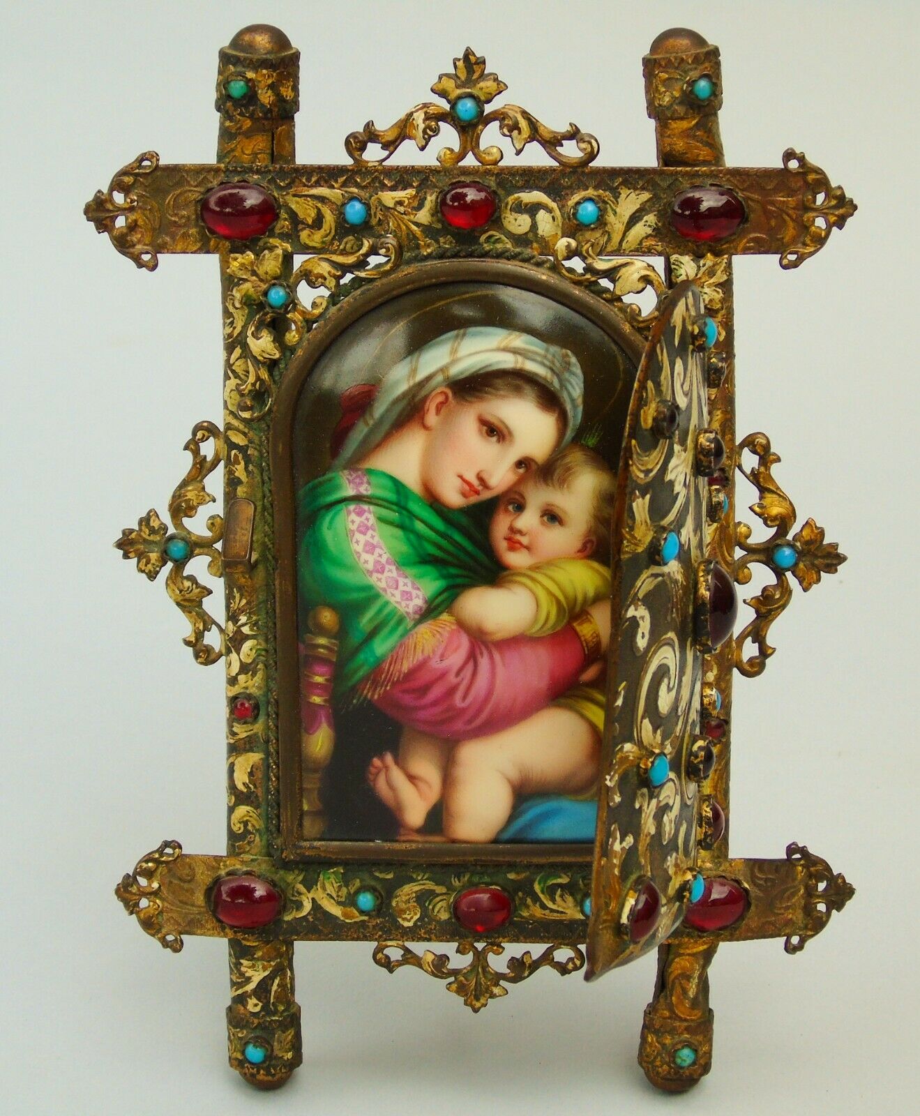 Beautiful 19th Century Miniature Porcelain Plaque Madonna