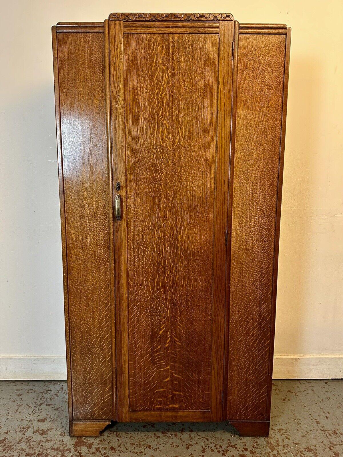 Beautiful 80 Year Old Oak Breakfront Single Wardrobe 1940s