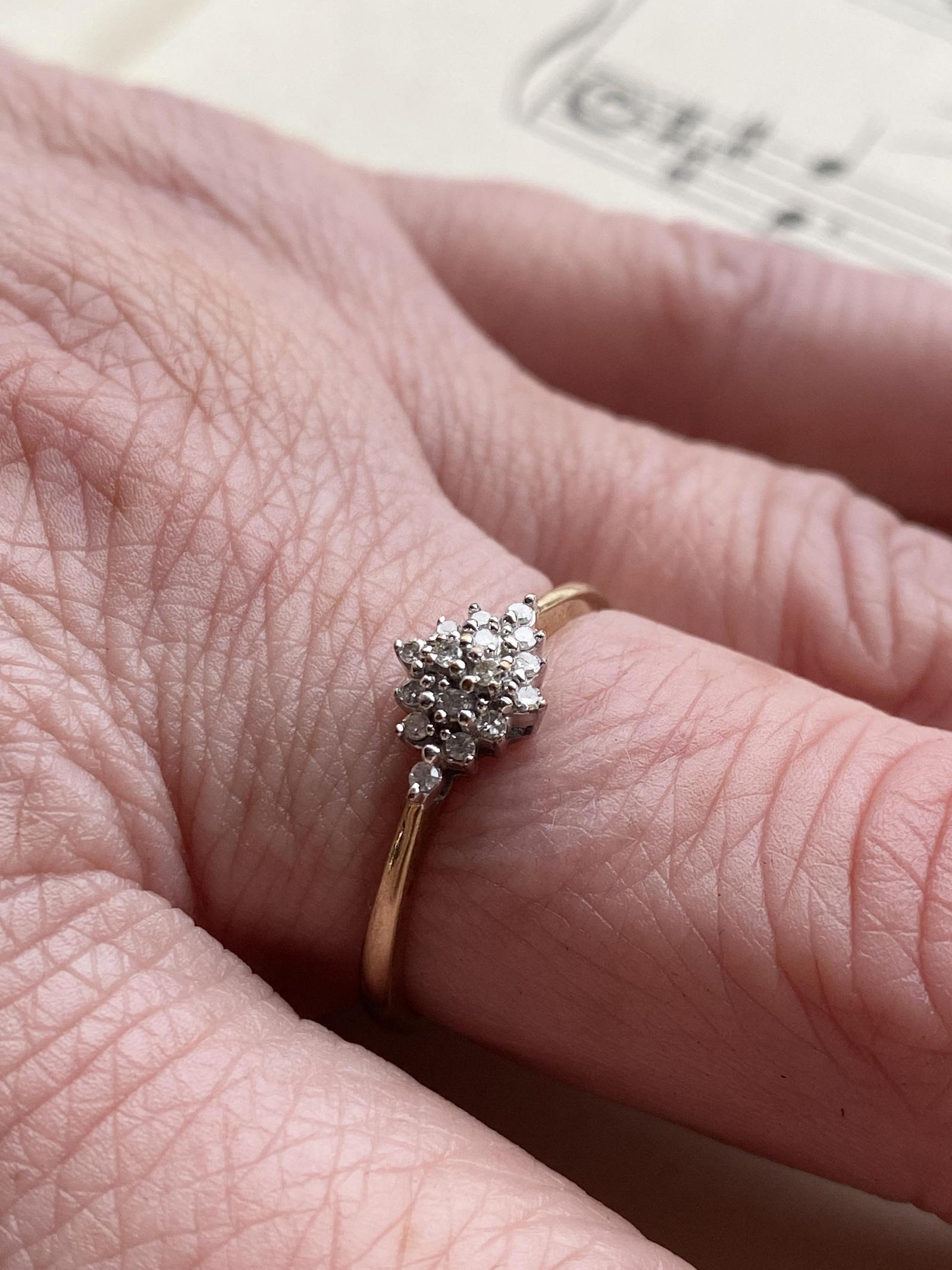 Beautiful 9ct Gold & Diamond Cluster Ring Size P 1/2