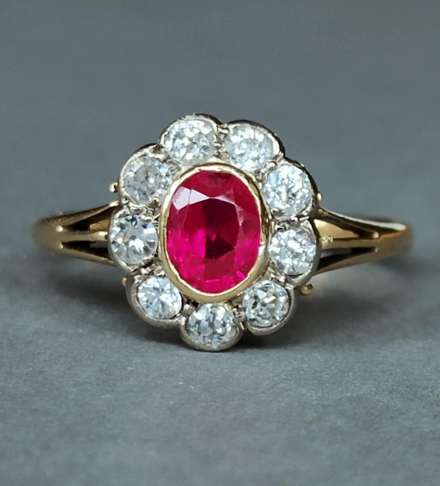 Beautiful Antique 18ct Gold Ruby Diamond Cluster Ring (1 of 10)