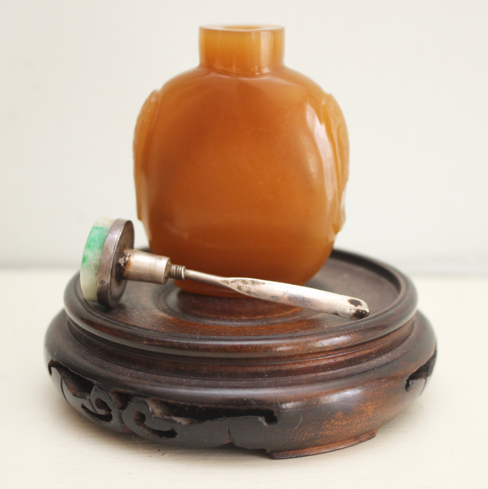 Beautiful Antique 19th Century Chinese Amber Hardstone Snuff Bottle