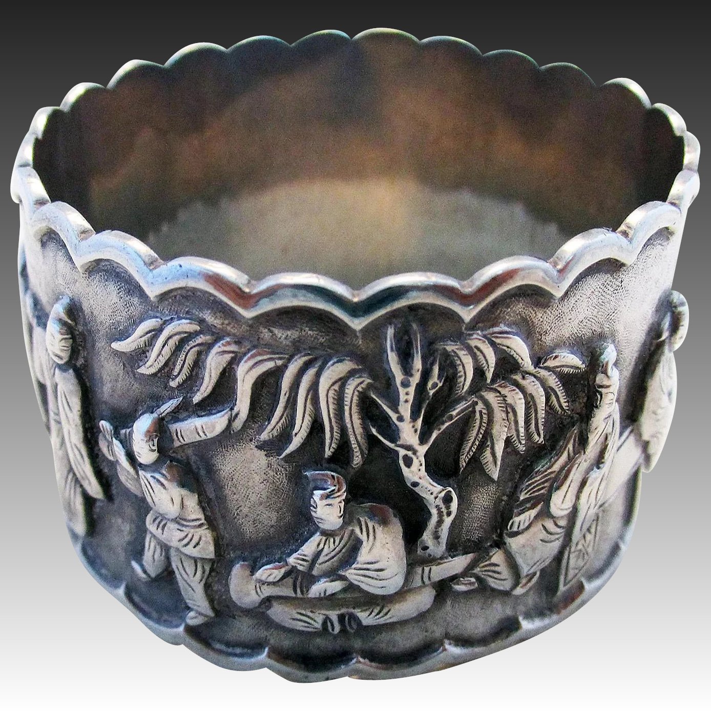 Beautiful Antique 19th Century Chinese Export Solid Silver Serviette Napkin Ring C.1890