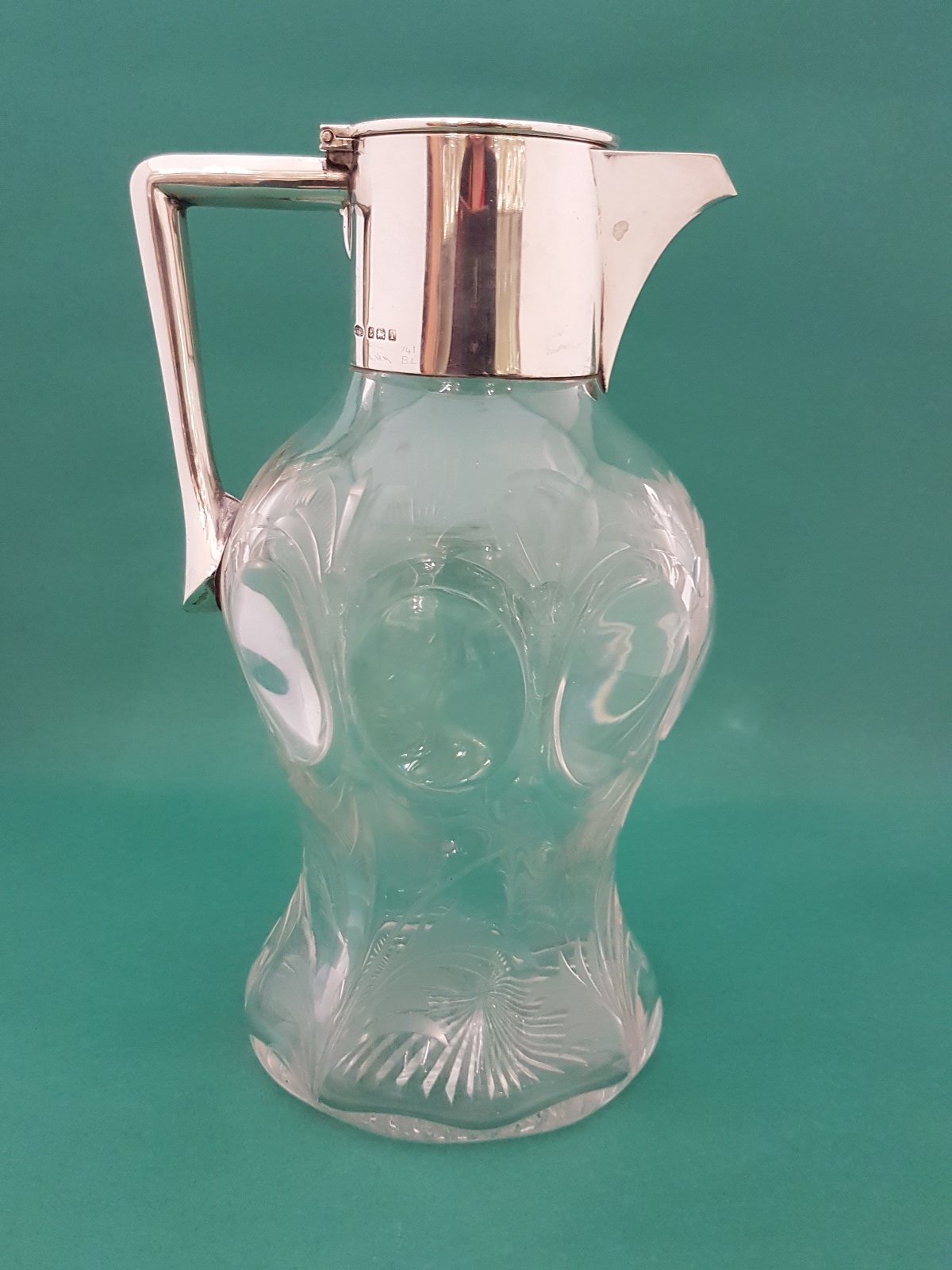 Beautiful Antique Edwardian Silver Mounted Cut Glass Claret Jug