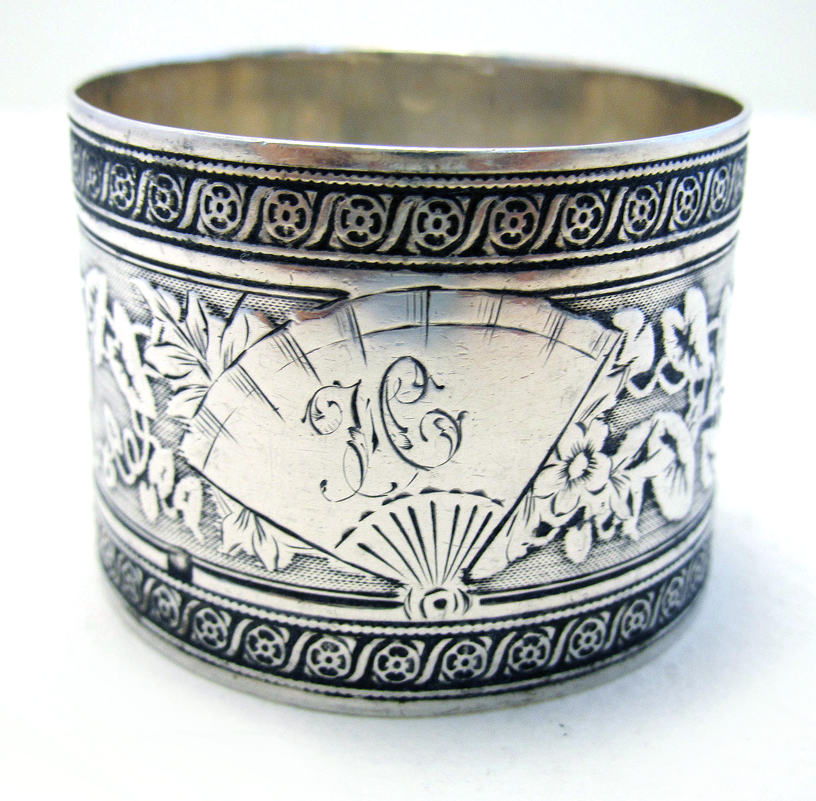 Beautiful Antique French Solid Sterling Silver 950 Hallmarked Serviette Napkin Ring, 19Th-Century, Guilloche Tumpet Vine
