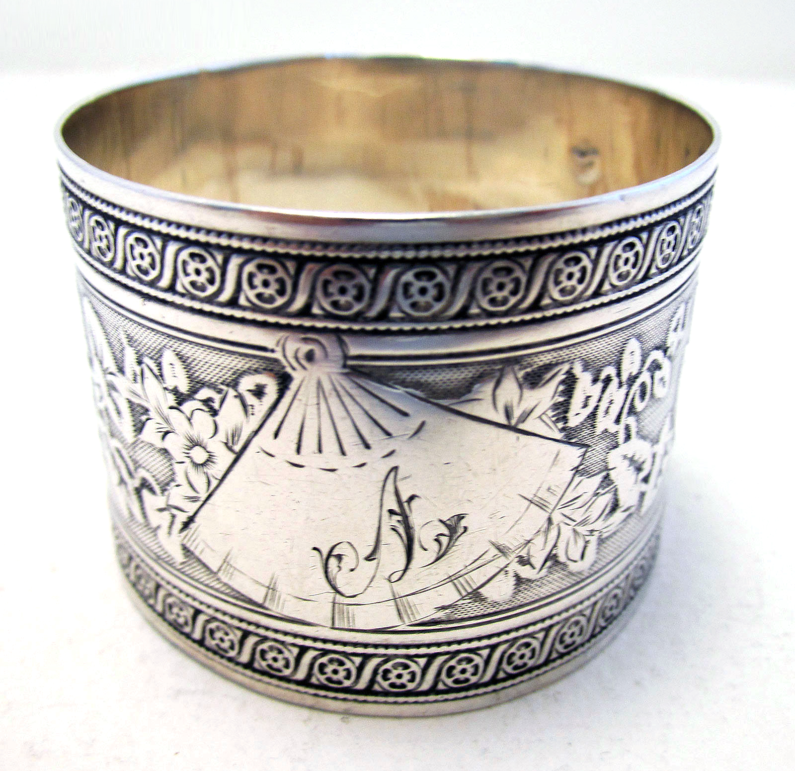 Beautiful Antique French Solid Sterling Silver 950 Hallmarked Serviette Napkin Ring, 19th Century, Guilloche Tumpet Vine