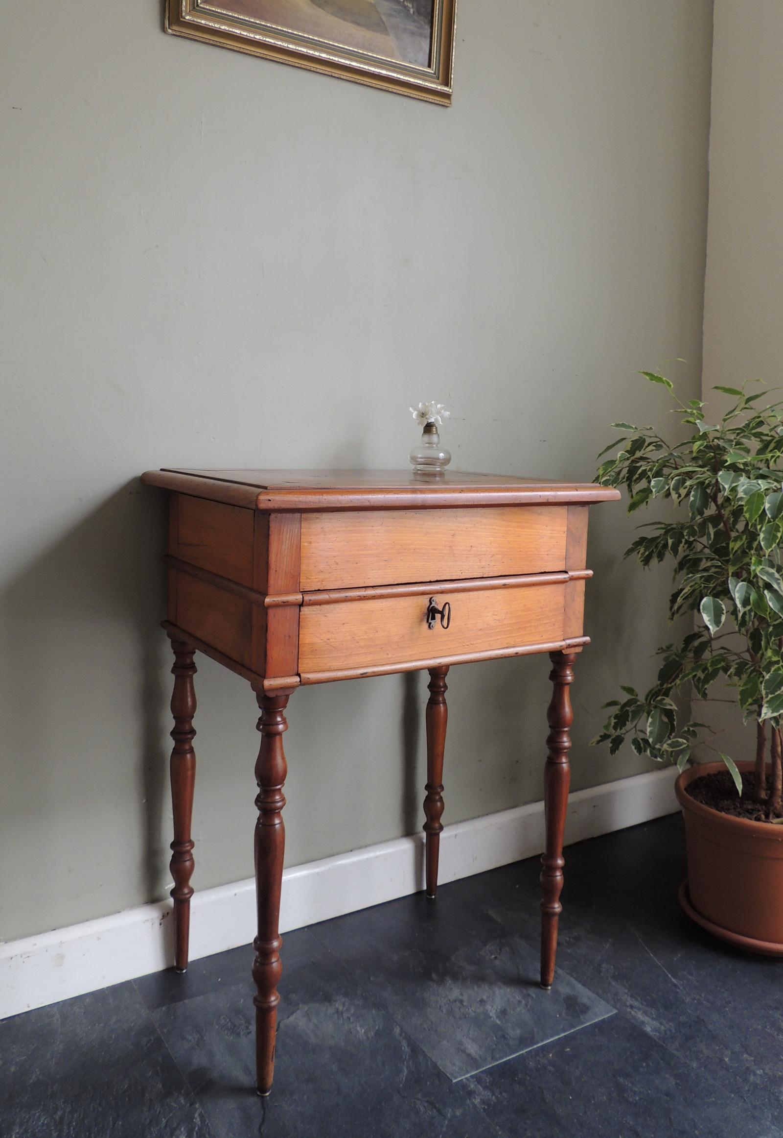 Beautiful Antique French Solid Wood Lamp Side Table with Storage Drawer