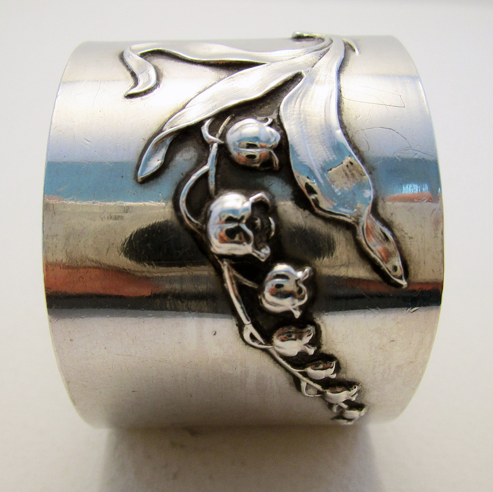 Beautiful Antique French Sterling Silver Hallmarked Large Serviette Napkin Ring, Minerva .950. Muguet / Lily of the Valley C.1890 (1 of 1)