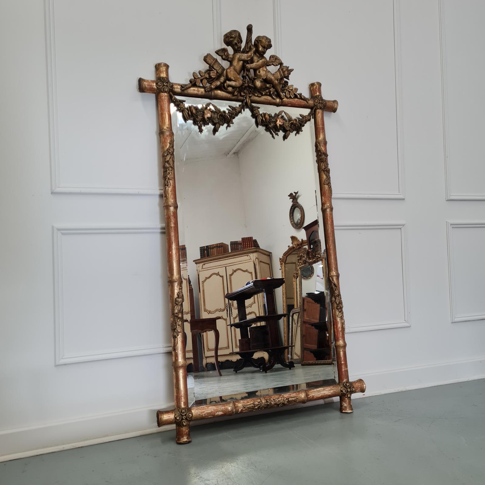 Beautiful Antique Ornate Gilded Faux Bamboo Mirror