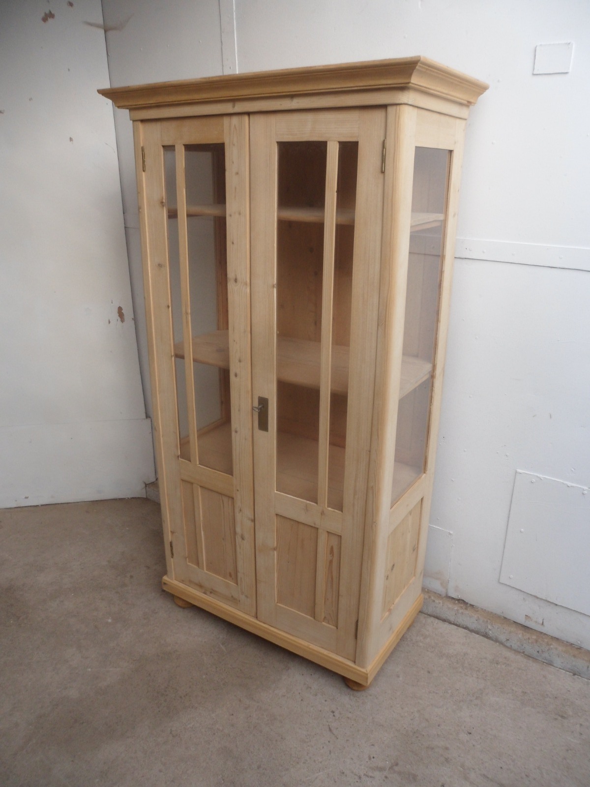 Beautiful Antique Pine Display Cabinet / Kitchen Dresser To Wax / Paint