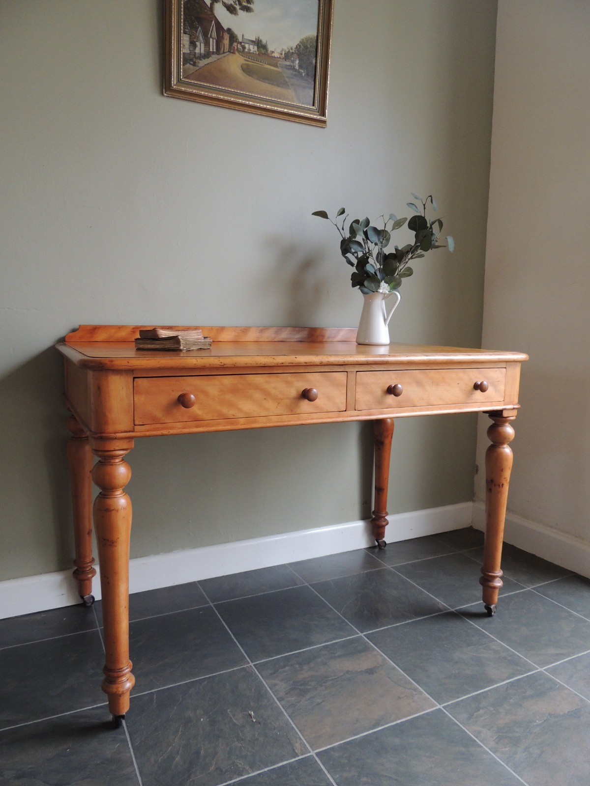 Beautiful Antique Satinwood Victorian Desk / Hall Table - Heal & Sons London