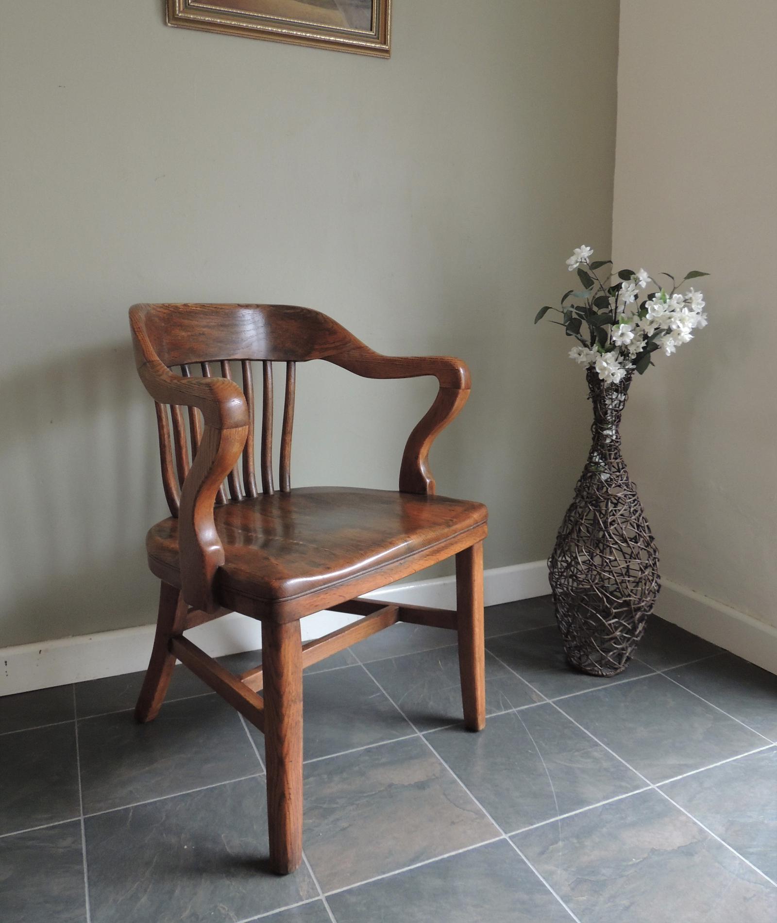 Beautiful Antique Solid Oak Captains Office Occasional Chair