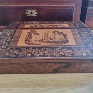 Beautiful Antique Tunbridge Ware Writing Slope with Castle Top in Excellent Condition