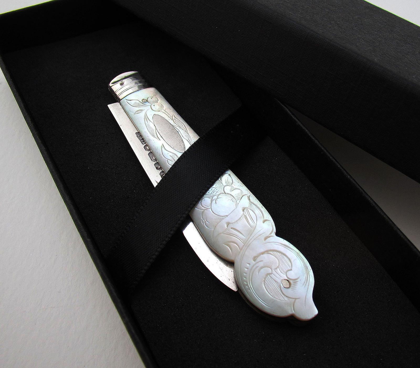 Beautiful Antique Victorian 1865 Sterling Silver Hand-carved Mother of Pearl Fruit Knife, 19th-century Sheffield (1 of 9)