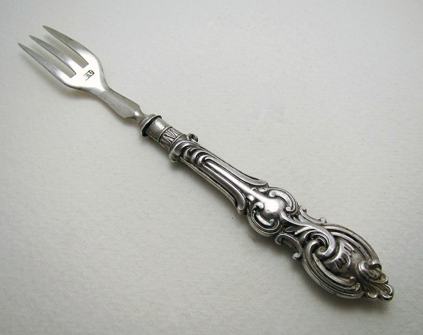 Beautiful Antique Victorian English Solid Sterling Silver Pickle/Olive Fork. George Unite. 19th Century.