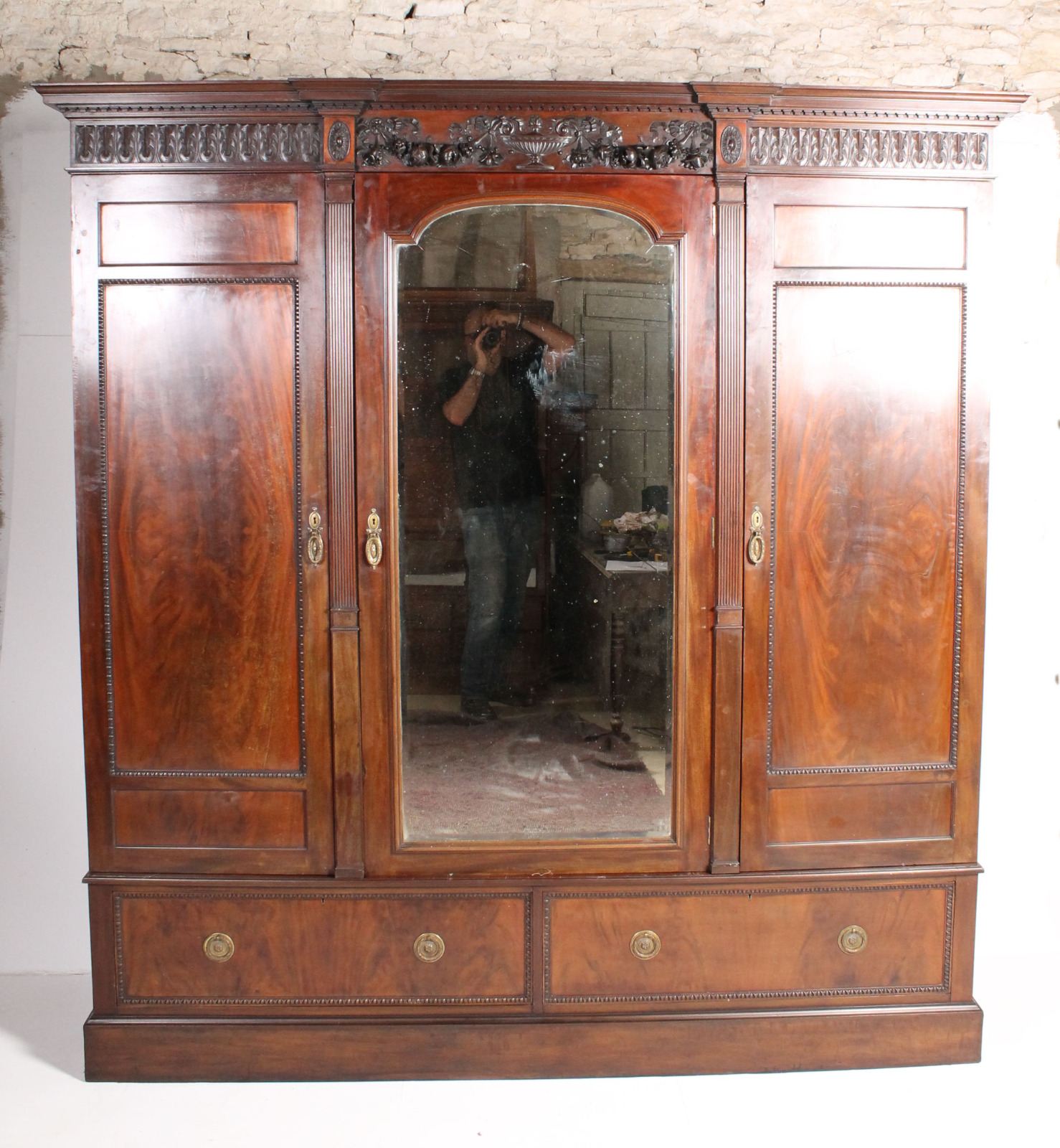 Beautiful Antique Victorian Maple & Co Mahogany Carved Triple Wardrobe Compactum