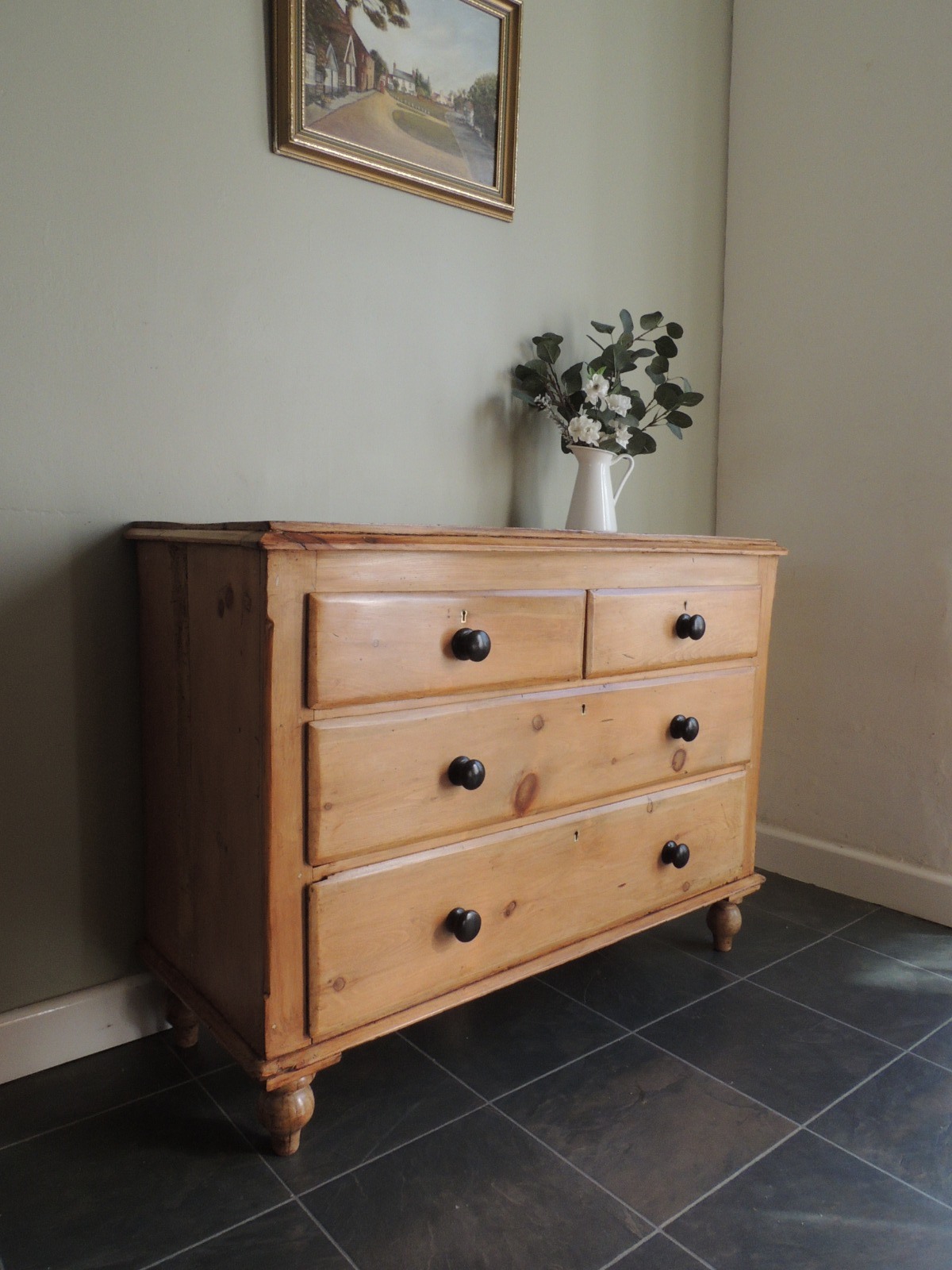 Beautiful Antique Victorian Solid Pine Stripped Chest of Drawers