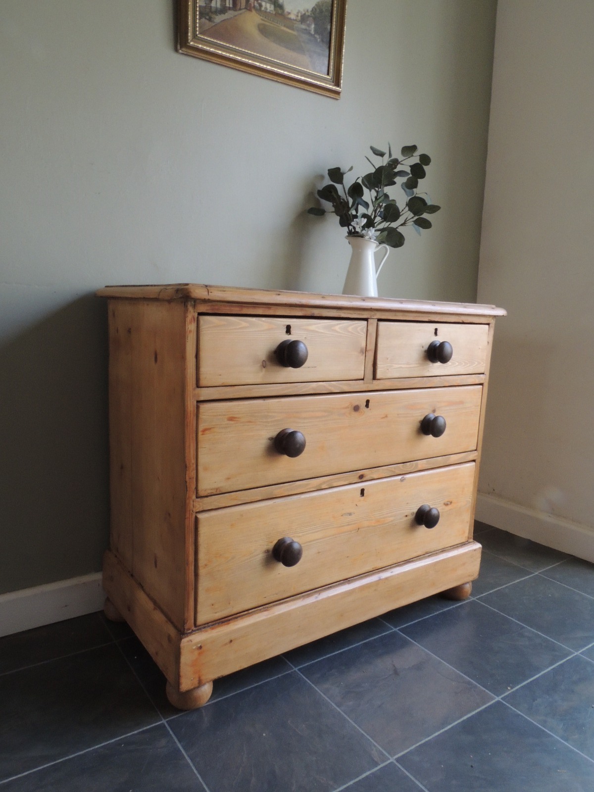 Beautiful Antique Victorian Solid Pine Stripped Chest of Drawers