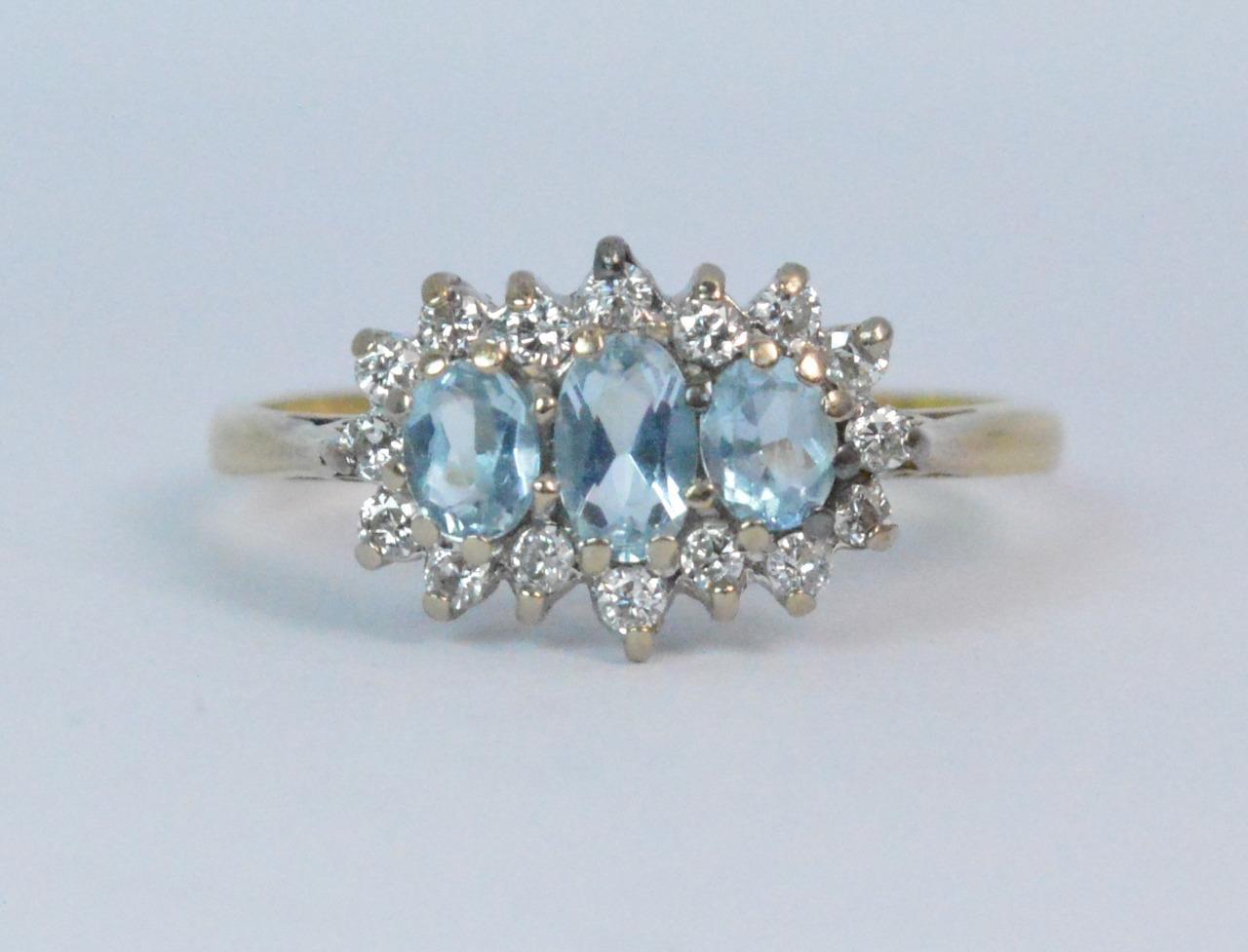 Beautiful Aquamarine & Diamond 18ct Gold Cluster Ring