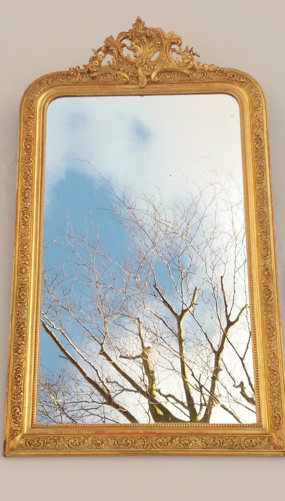 Beautiful Arched French Gilt Overmantle Mirror