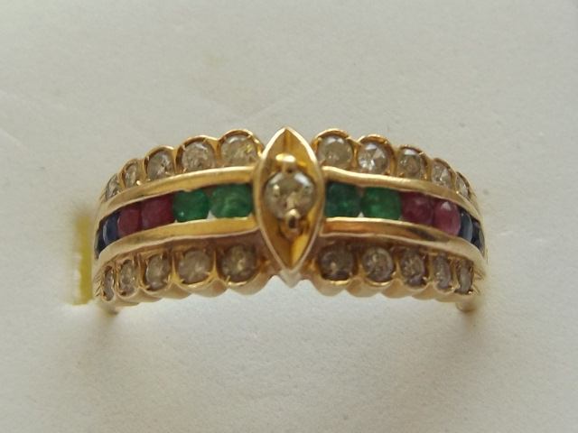 Beautiful Art Deco 18ct Gold Diamond Multi Gem Ring