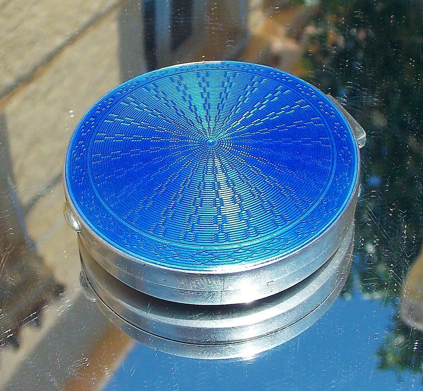 Beautiful Art Deco Deakin & Francis Solid Silver Guilloche Blue Enamel Snuff Box