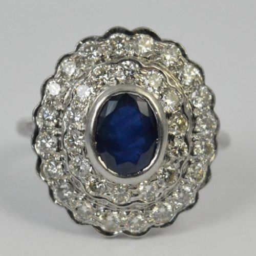 Beautiful Art Deco Large 18ct White Gold Sapphire & 1ct Diamond Cluster Ring