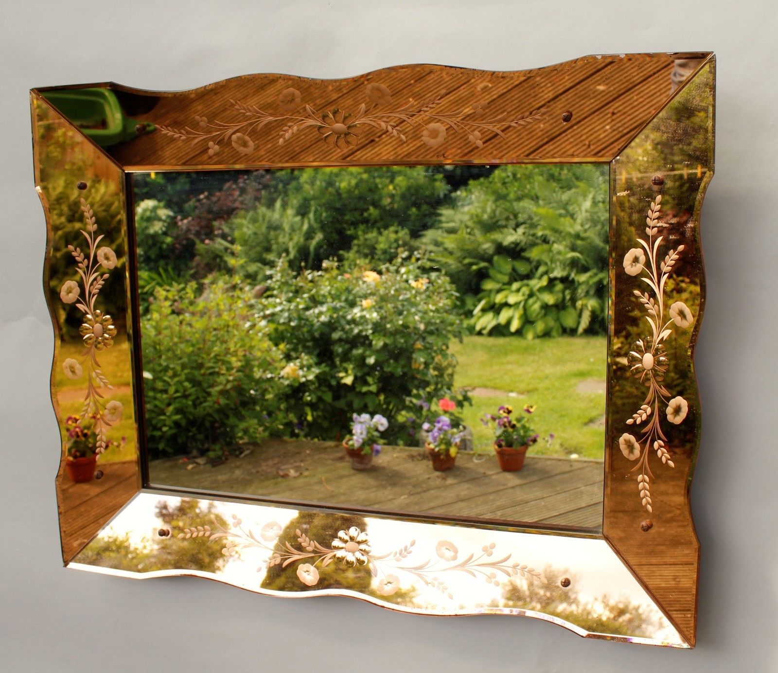 Beautiful Art Deco Peach Glass Mirror (1 of 1)