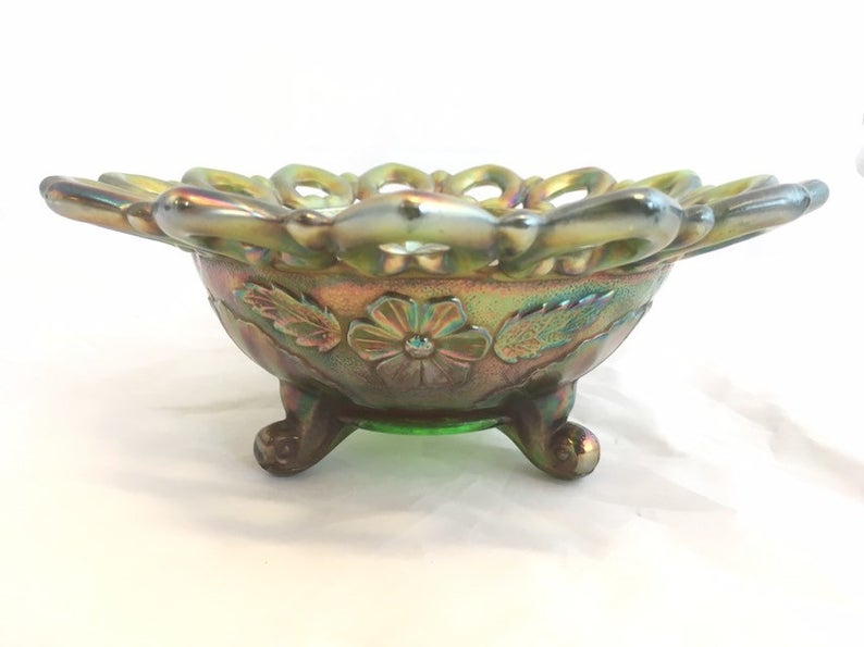 Beautiful Art Nouveau Northwood Carnival Glass Bowl with Floral Design, Iridescent Purple Glass - Northwood Shell & Wild Rose