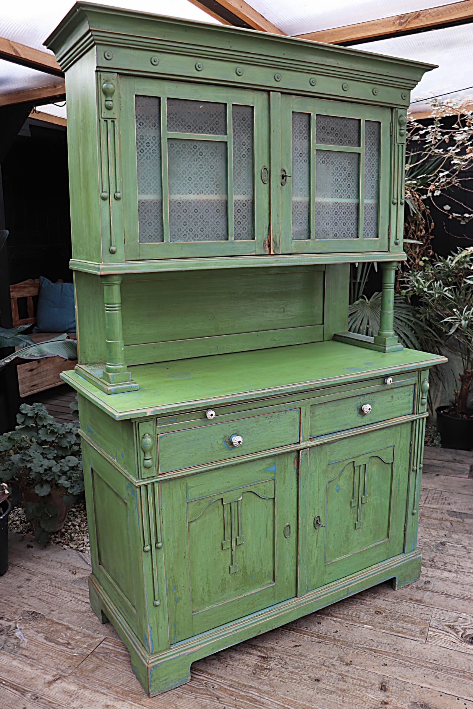 Beautiful & Big Old Victorian Pine/ Green Painted Two Piece Glazed Dresser