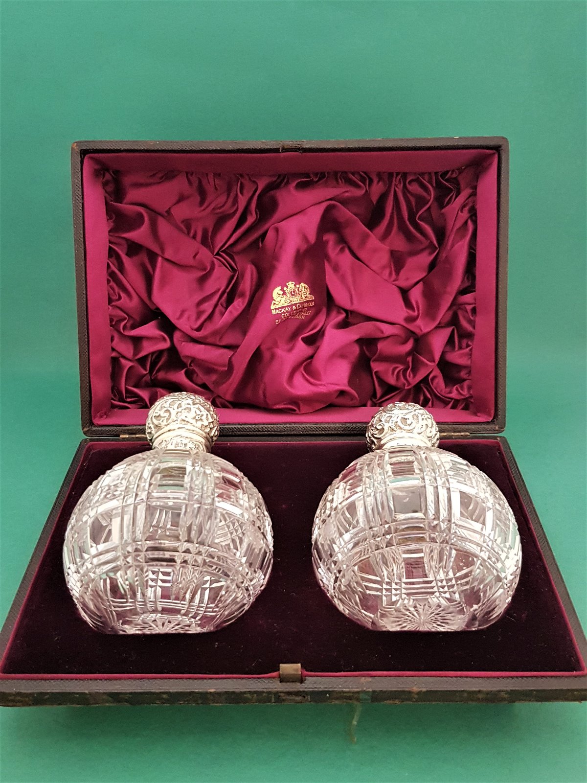Beautiful Boxed Pair of Antique Victorian Silver Mounted Scent Bottles