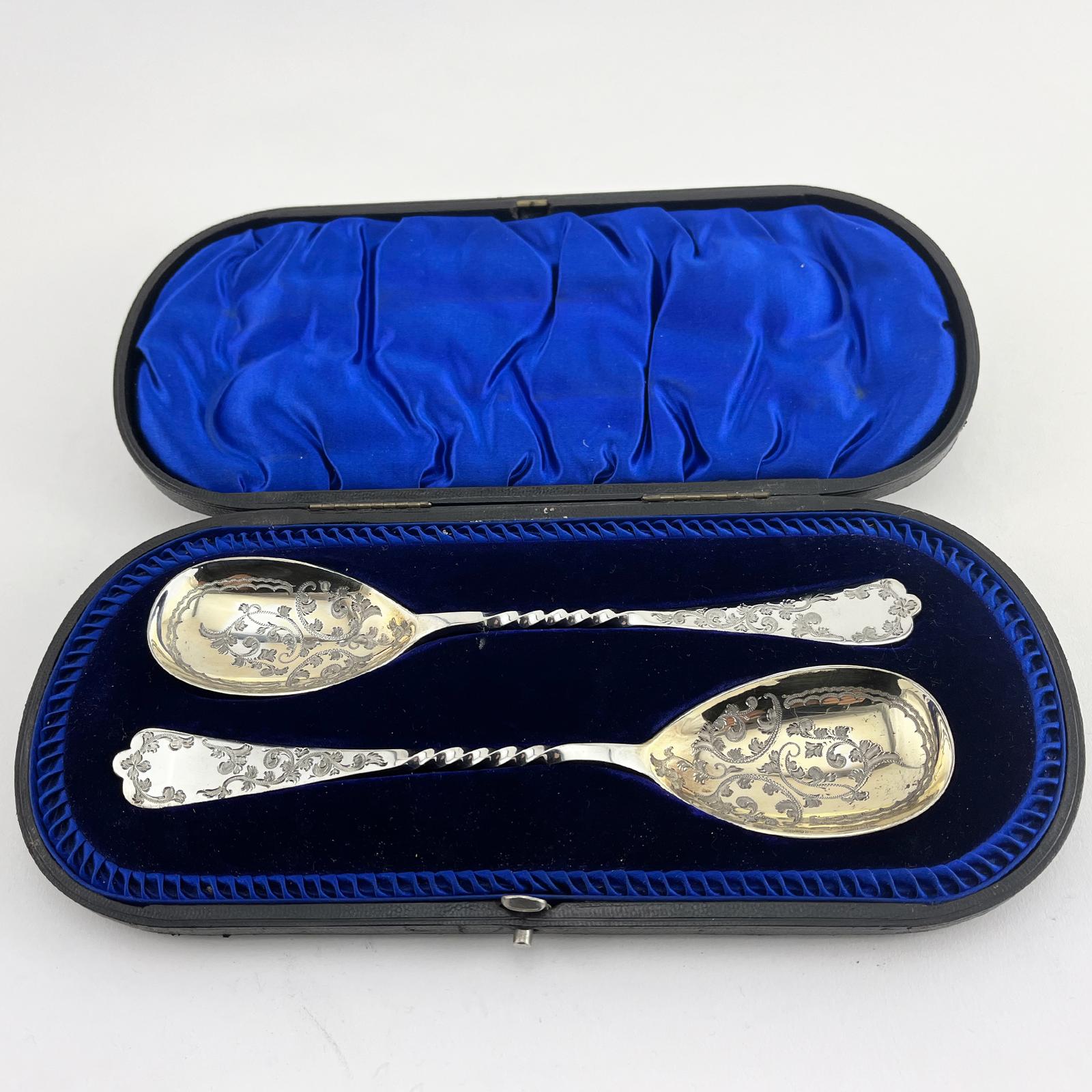 Beautiful Boxed Pair of Sterling Silver Serving Spoons (1 of 7)