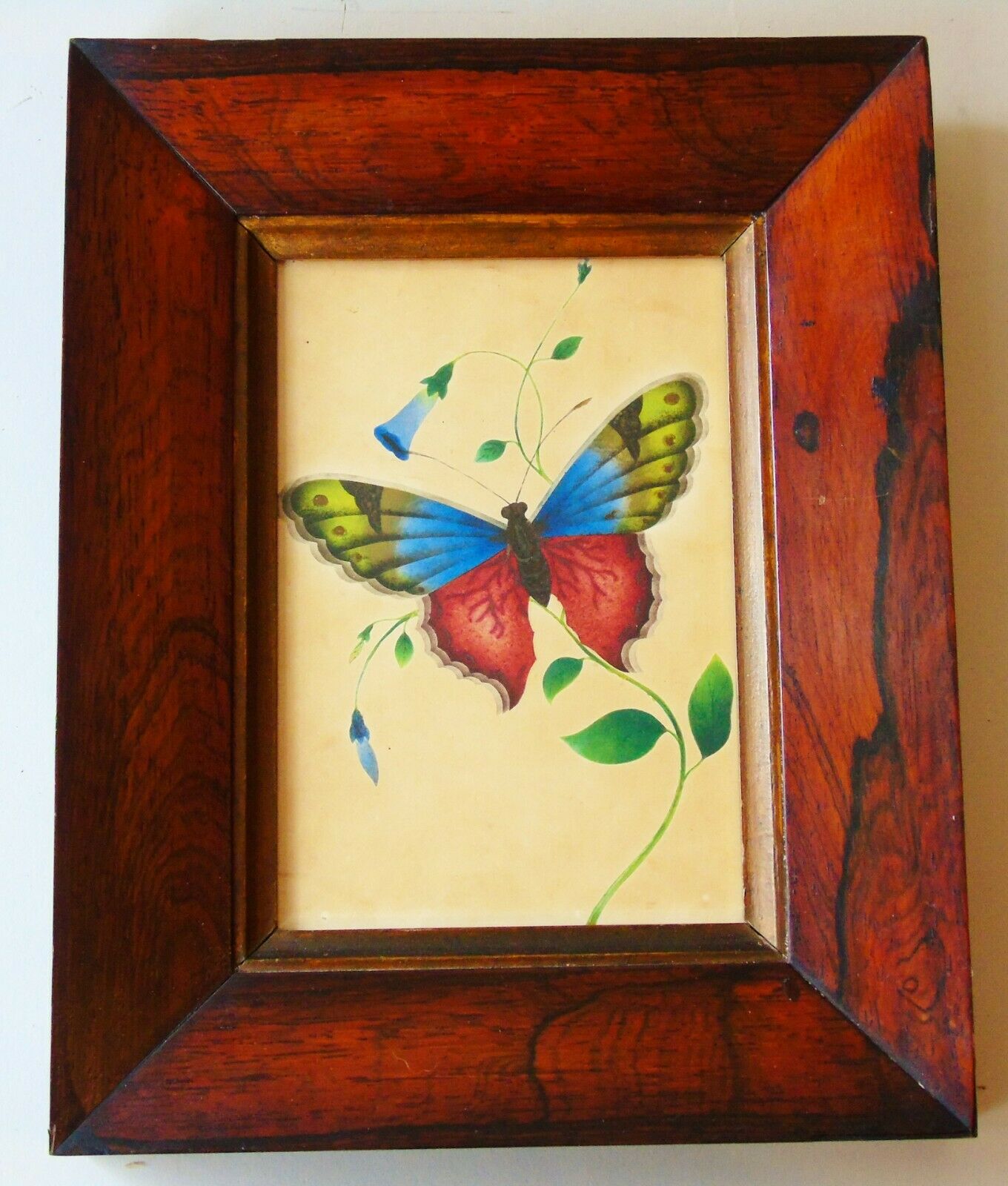 Beautiful Butterfly Watercolour Rosewood Frame 19th Century
