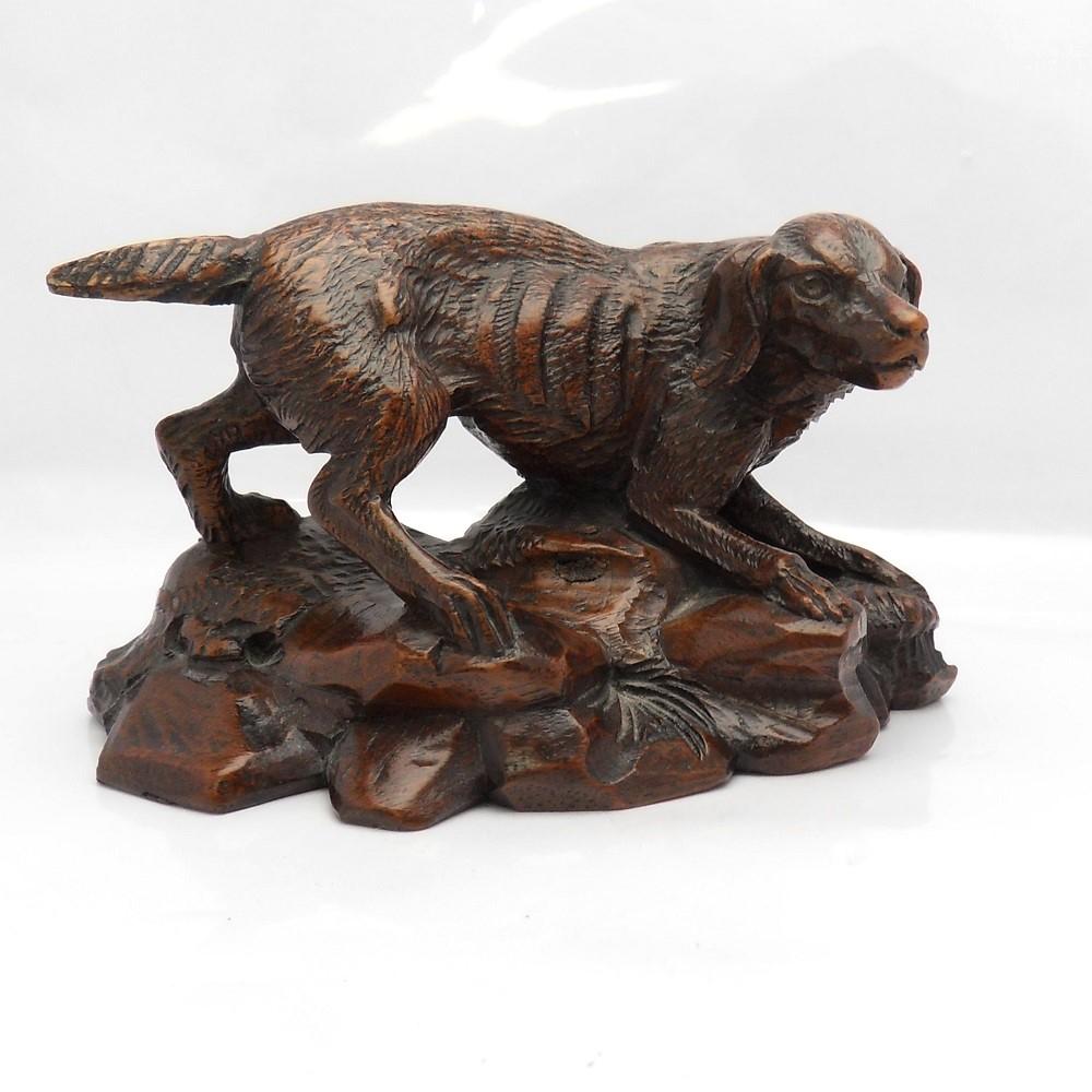 Beautiful Carved Black Forest Retriever on an Outcrop Base