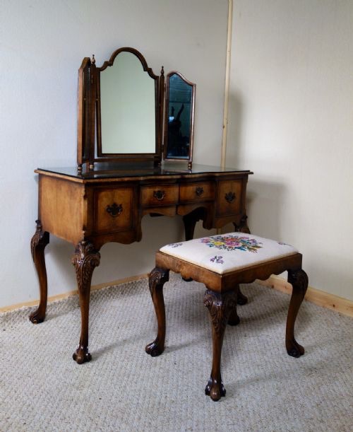 Beautiful Carved Walnut Dressing Table and Stool c.1930 (1 of 1)