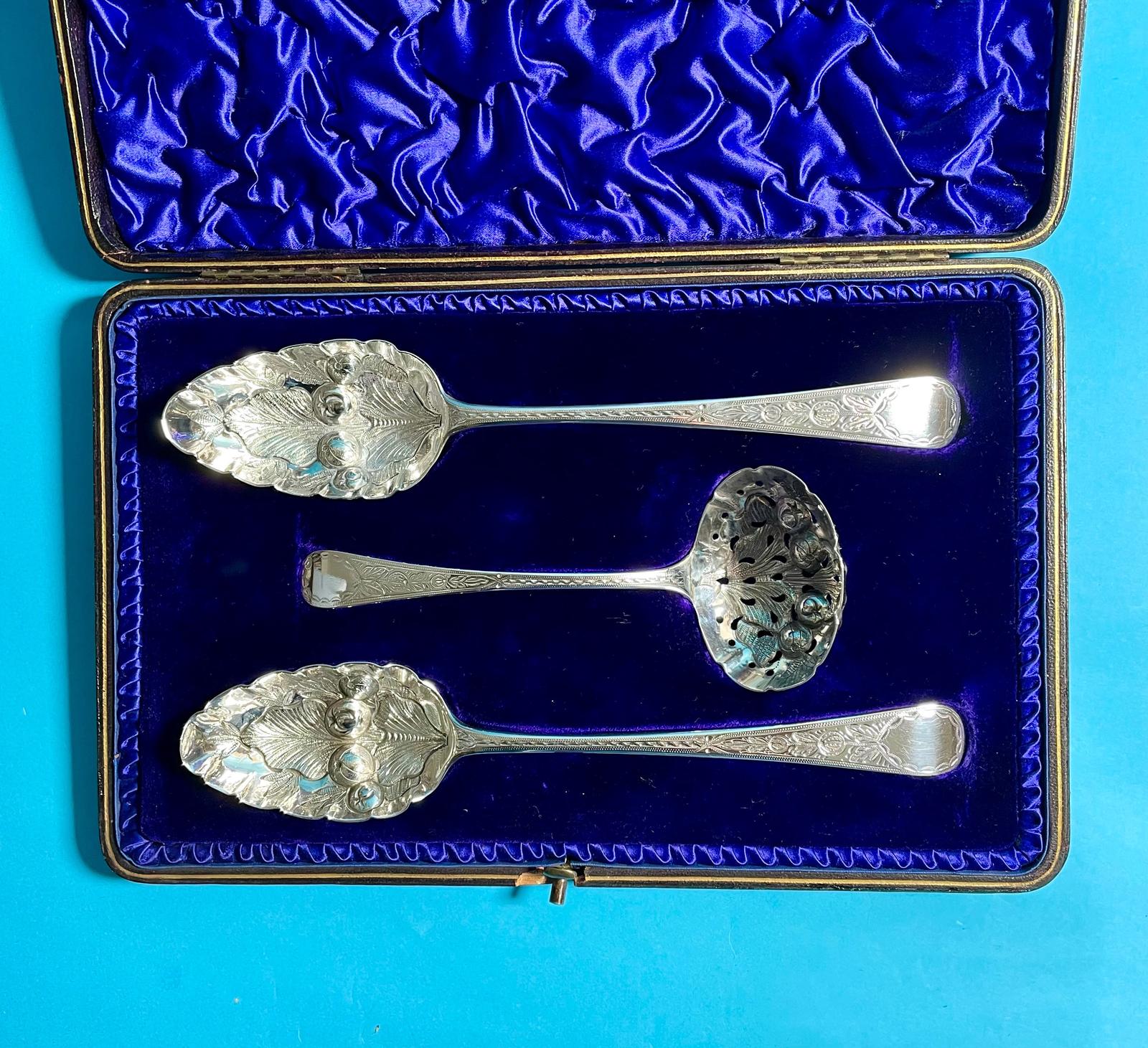 Beautiful Cased Set of Georgian Silver Serving Spoons