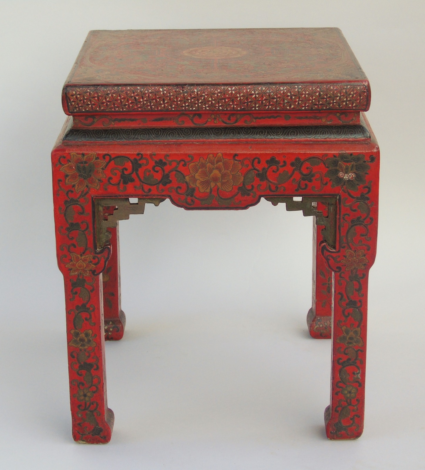 Beautiful Chinese Red Lacquer Hand Painted Table / Urn Stand (1 of 1)